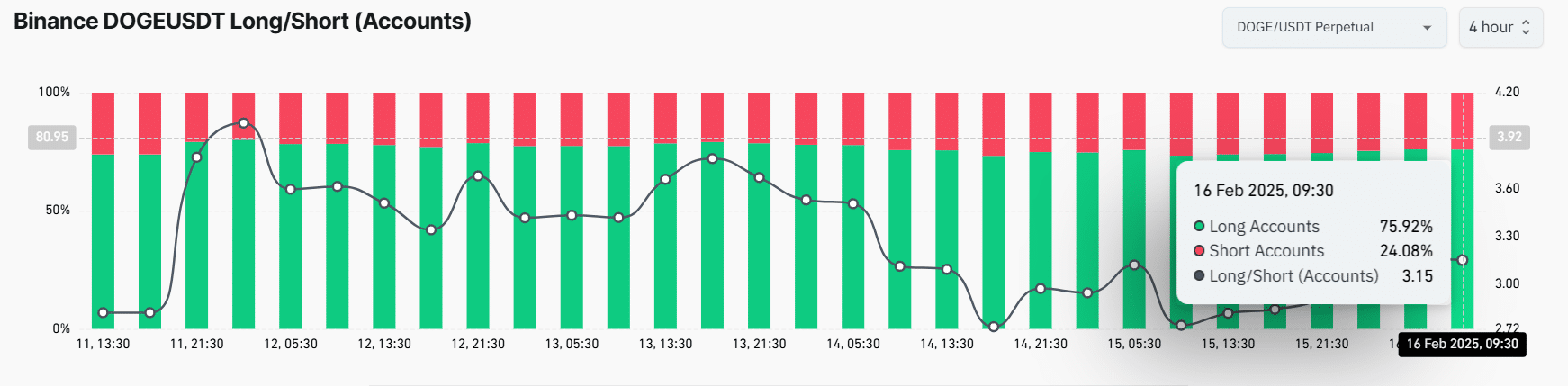 Data revealed that Binance’s DOGE/USDT long/short ratio was at 3.15, at press time.