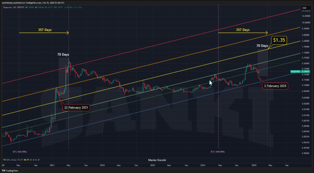 💡 #DOGE to $1.35 within 70 days from the February 3rd lows, if it follows the timing of the last cycle.
