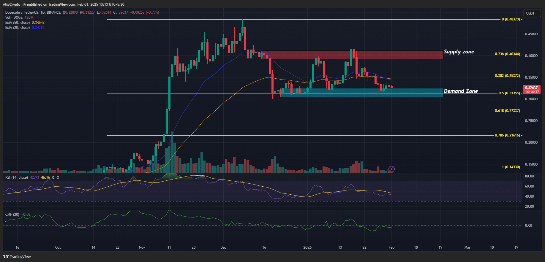 Here, it’s worth noting, however, that the positive update didn’t stir DOGE’s movement on the price charts. In fact, since December, the memecoin has been consolidating between $0.30 and $0.40.