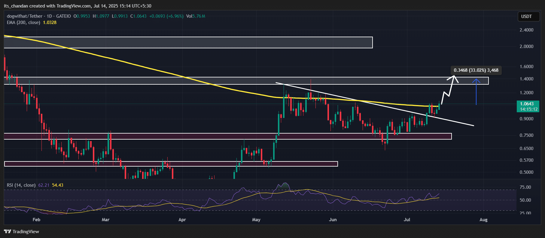 Whether WIF hits the projected $1.40 mark hinges on holding above its EMA support and avoiding profit-taking dips.