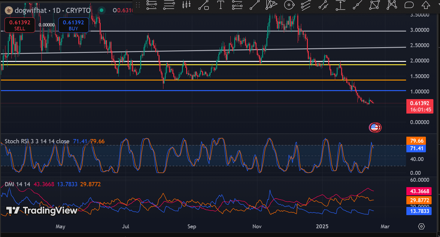 In fact, at the time of writing, dogwifhat was trading at $0.6153. This marked a 7.33% decline in daily charts.