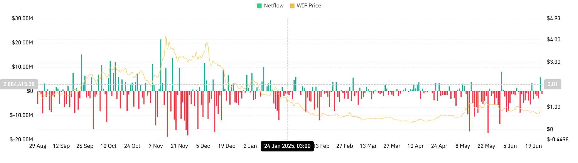 According to Coinalyze, WIF recorded a Buy Volume of $67.89 million on the 23rd of June against a Sell Volume of $61.75 million.
