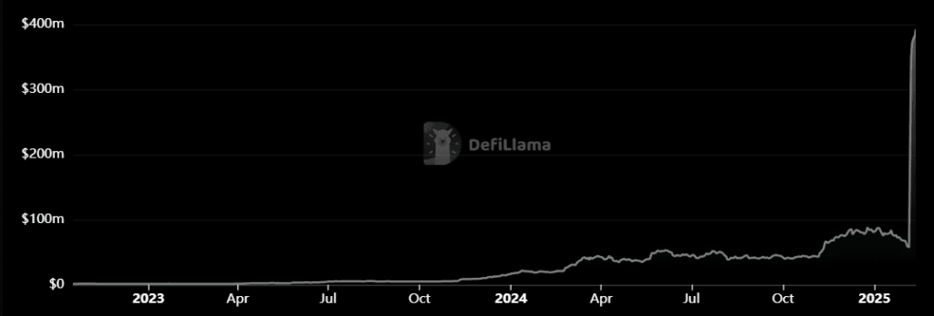 The app is available on Arbitrum, Mantle, Polygon zkEVM, X Layer, and Berchain. The latter now accounts for 84% of the TVL, with $331 million, followed by Arbitrum with $53 million.