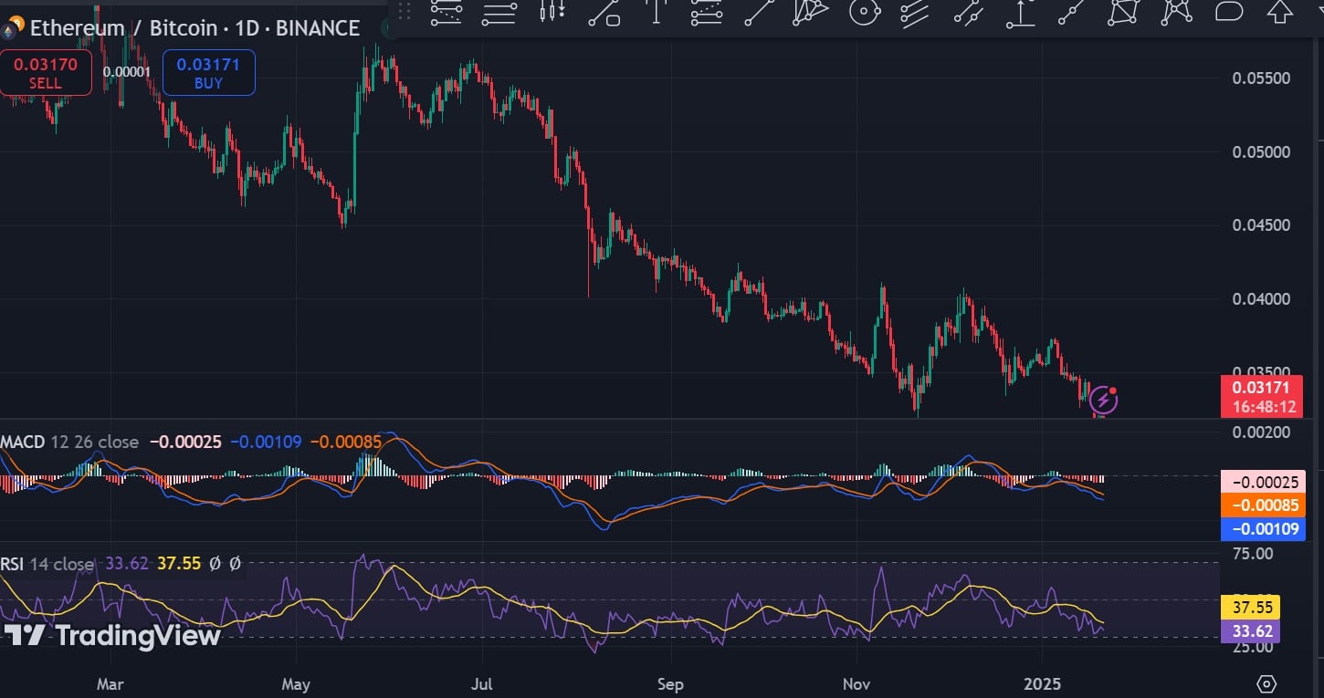 In fact, as of this writing, ETH/BTC was trading at $0.031, hitting a four-year low for the pair. This dip raises concerns about Ethereum’s future prospects and whether it can reverse its fortunes.