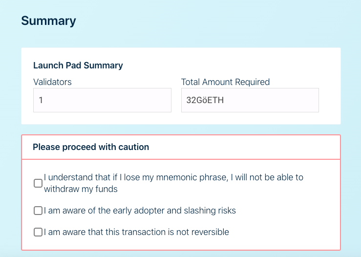 The first mission of the launchpad is to help validators educate themselves about all aspects of the process. Above all, we want to make sure validators know what they’re doing, and why they’re doing it.
