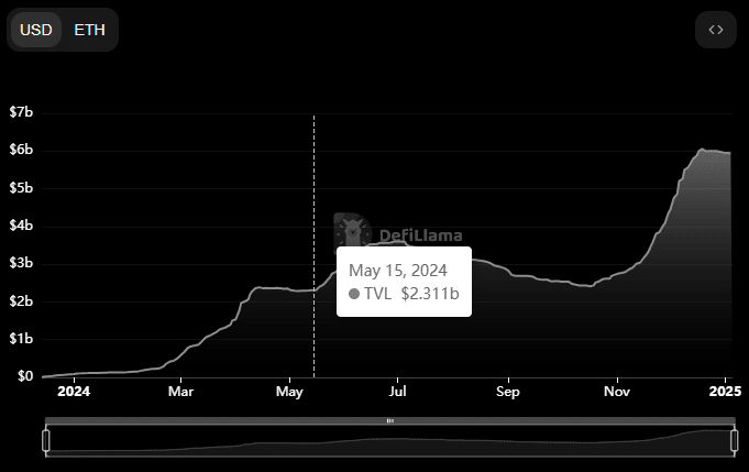 As of press time, ENA’s TVL stood at $5.921 billion, a range it has maintained since the 17th of December 2024.