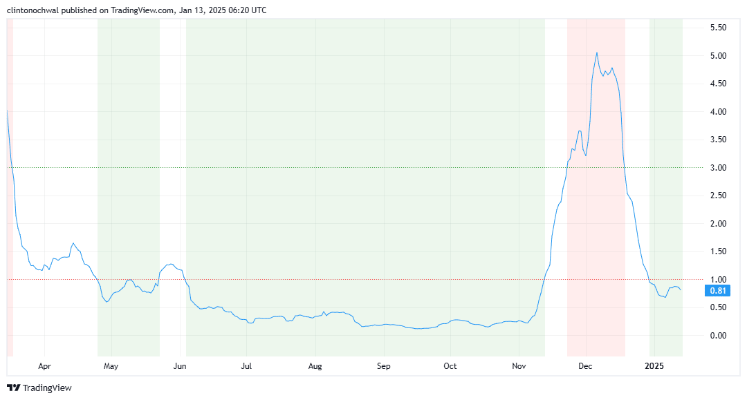 Currently, Ethereum Classic’s MVRV ratio suggests the asset is approaching undervaluation. Historically, when the MVRV ratio dips below 1, it indicates that most investors are holding ETC at a loss, which often precedes a price recovery.