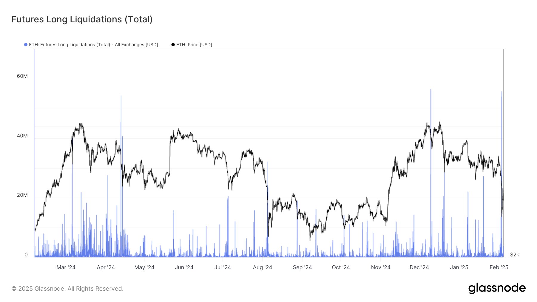 From the graph, it’s visible that the Ethereum futures market has just witnessed a massive amount of long liquidations. “Yesterday, $76.4M in ETH long liquidations hit the market, with $55.8M wiped out in a single hour – the second-largest spike in a year, just behind Dec 9’s $56M,” notes Glassnode.