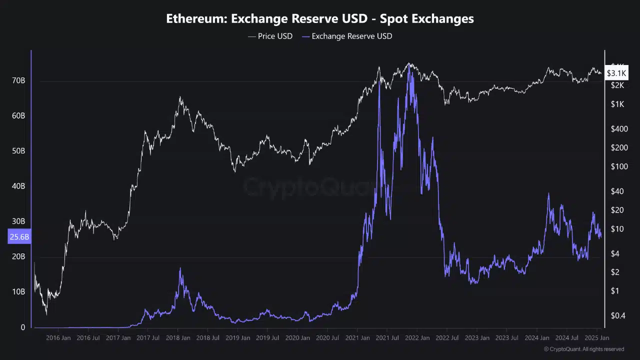 Amid all of these, one significant factor influencing Ethereum’s price movements is the reserve levels on spot exchanges.