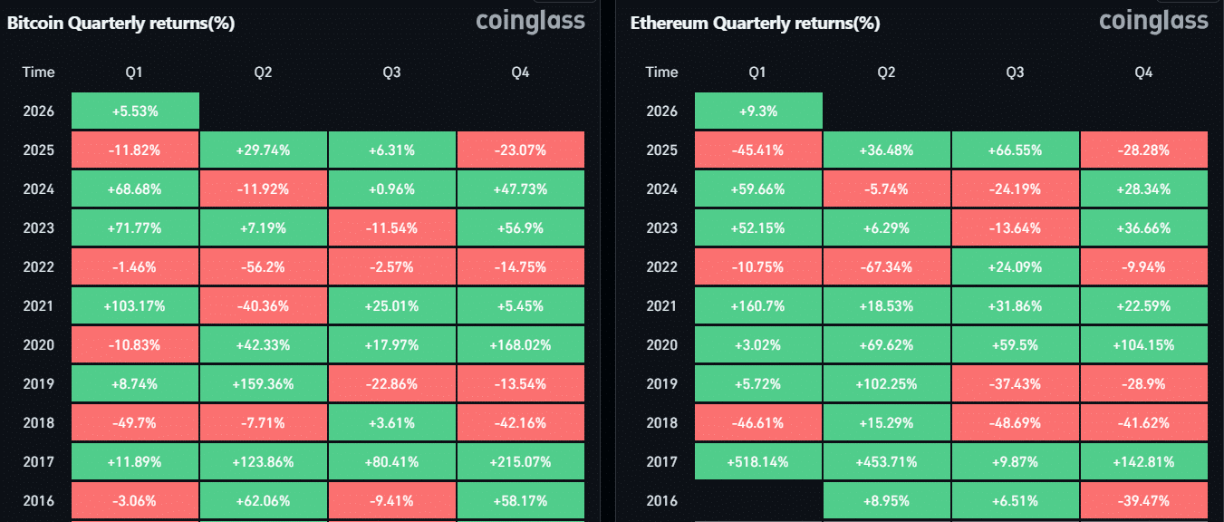From Q1 loss to early lead – Ethereum vs Bitcoin in 2026