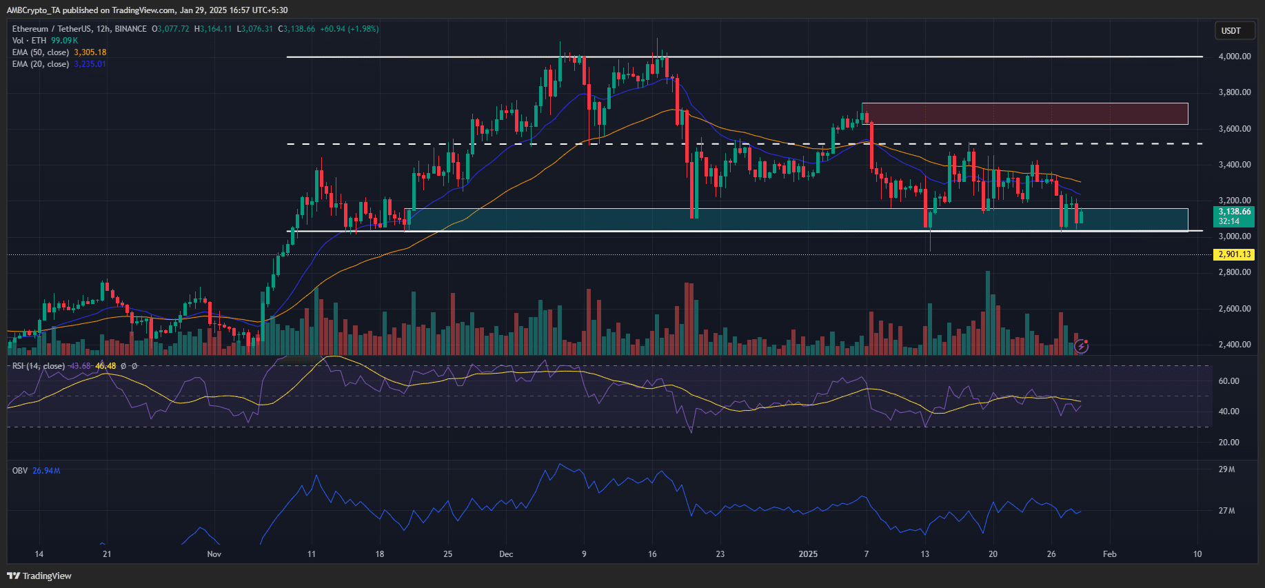 In the meantime, the ETH price has been in a bearish trend but has managed to defend the $3K support zone.