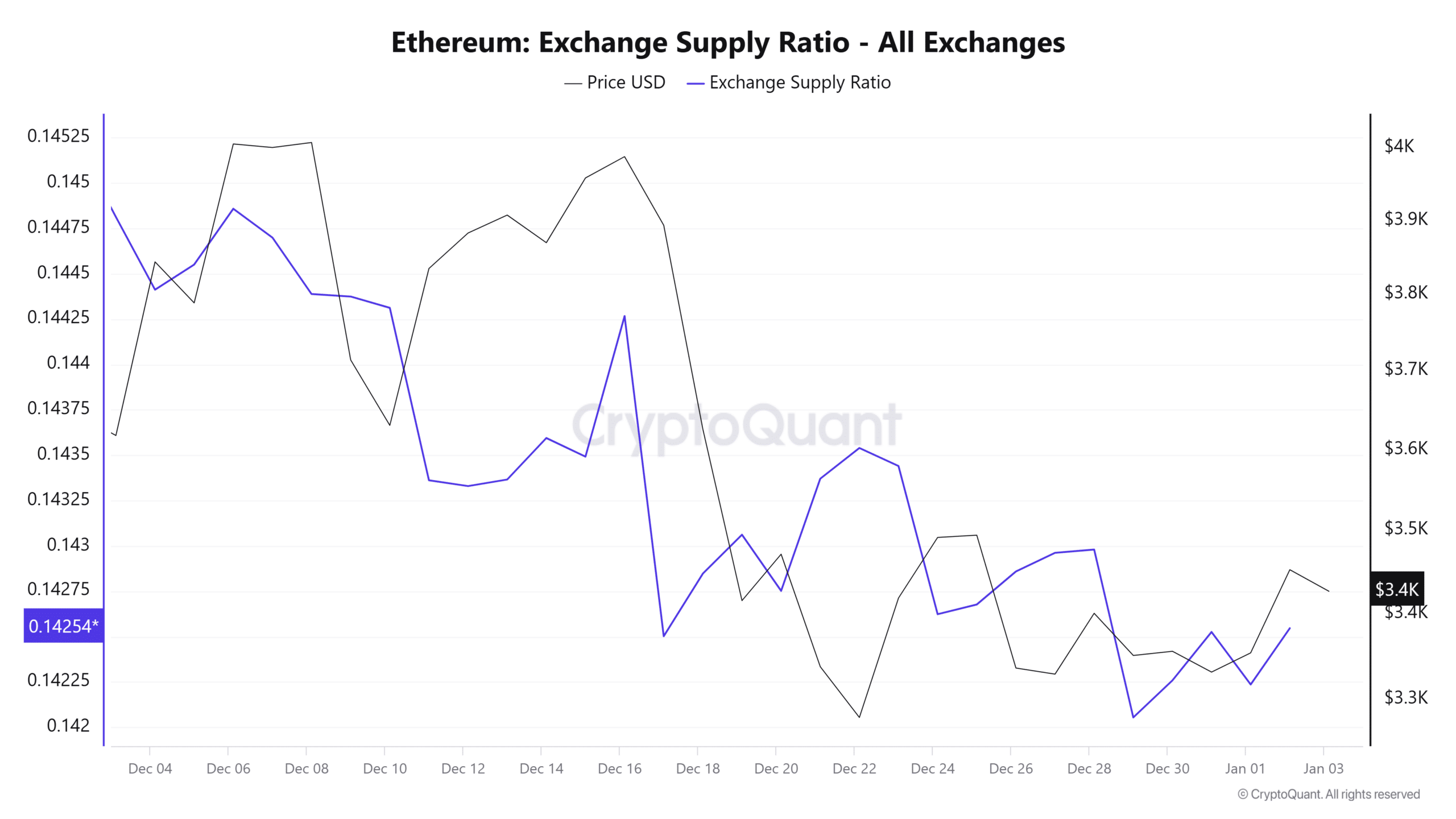 Looking further, Ethereum’s Exchange Supply Ratio has been declining over the past month. This indicates that ETH outflow from exchanges has outweighed inflow.