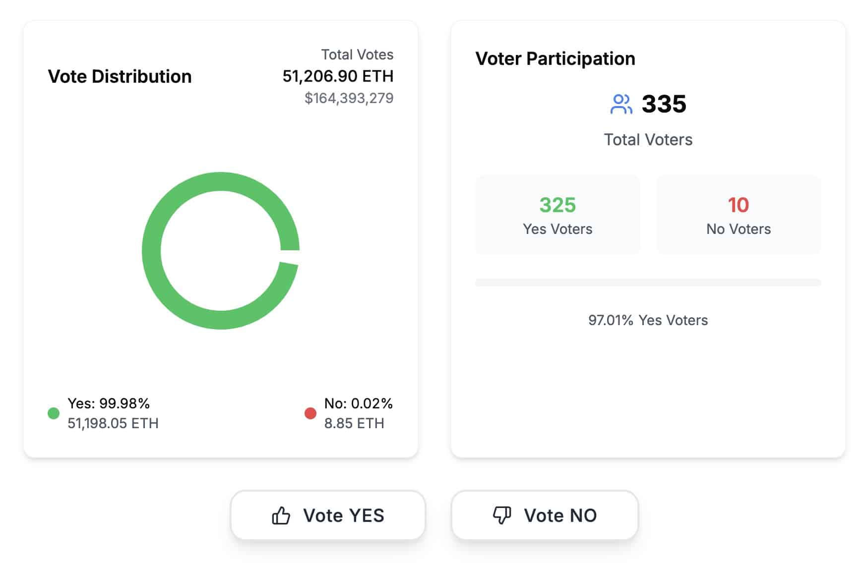 These voters, holding over 51,198 ETH valued at about $164 million, cast their votes through an unofficial on-chain poll at votedannyryan.com.