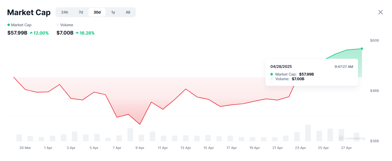 The volume in the past thirty days has been high as it gained 16.15% to $6.988 billion, accompanied by a market capitalization rise of 11.96% to $58 billion.