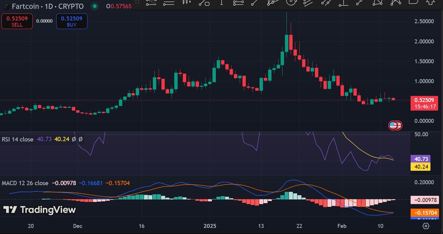 - Fartcoin has declined by 49.23% over the past month.