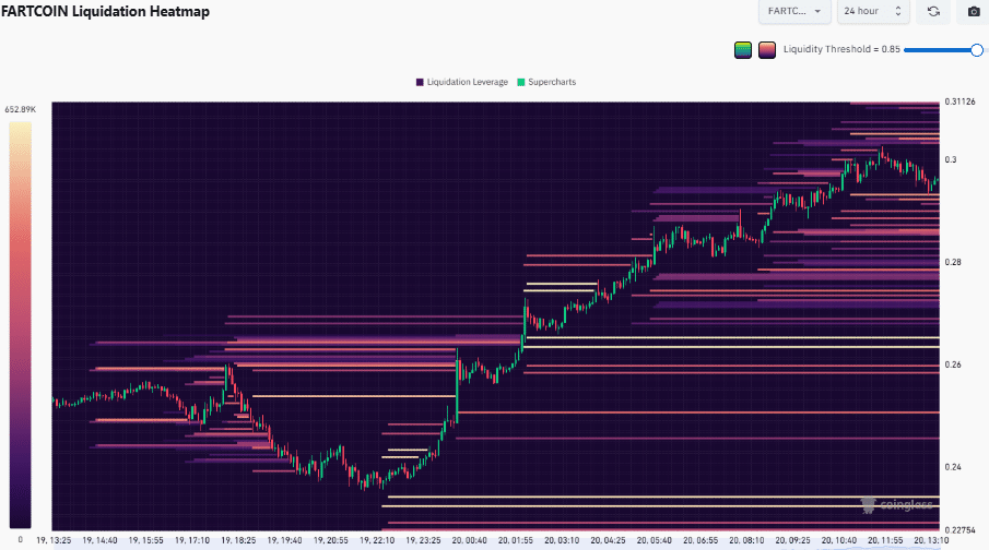 The largest positions were around $0.26, which accounted for more than $2 million worth of FARTCOIN. The other extreme clusters were below $0.24, where the FARTCOIN move was initiated.