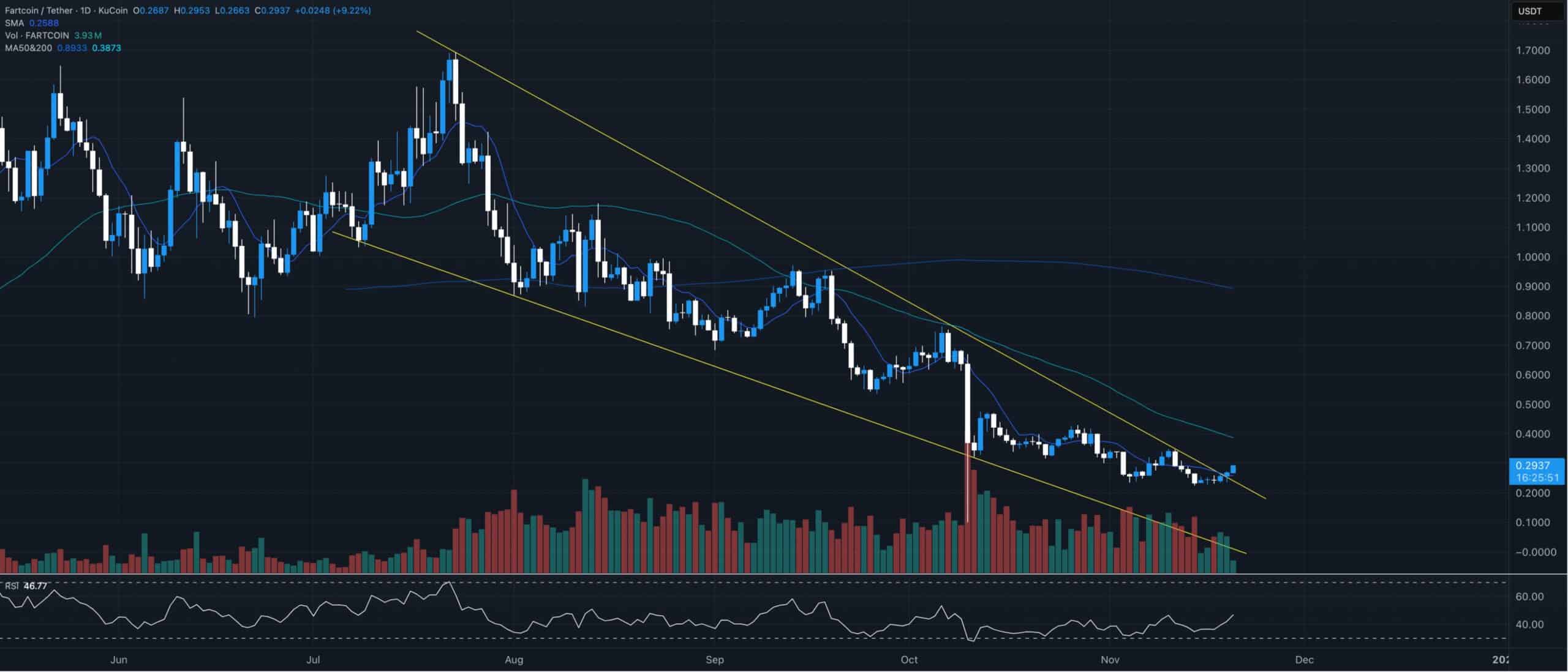 On the charts, the surge happened as the price of the memecoin broke above a multi-month descending channel. Fartcoin [FARTCOIN] has been in this consolidation since late July, when most altcoins peaked for the year 2025.