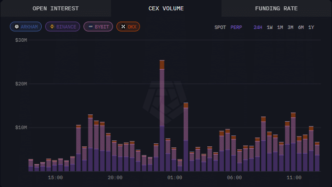 Bybit recorded the highest activity, followed by Binance and OKX. That surge aligned with the price breakout.