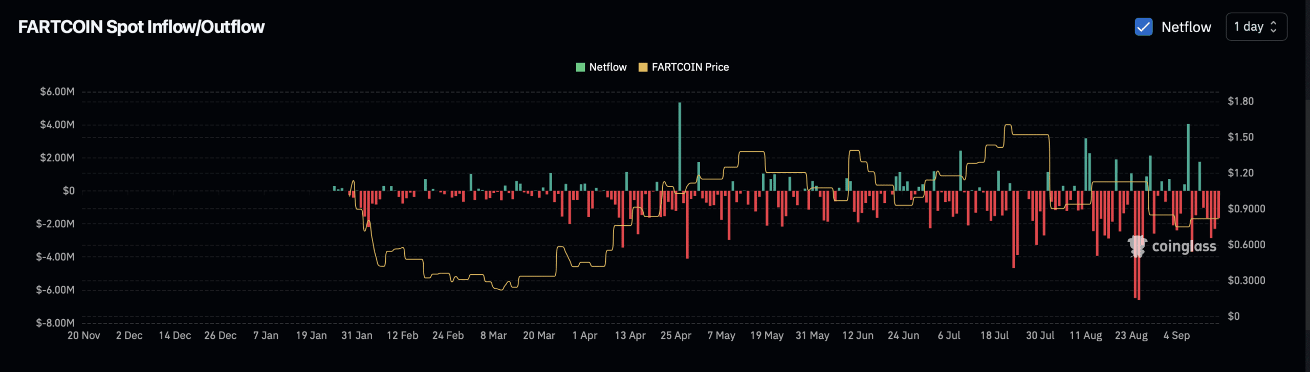 In the past day, Fartcoin [FARTCOIN] led the market decline, plunging 11% as bears became increasingly aggressive.