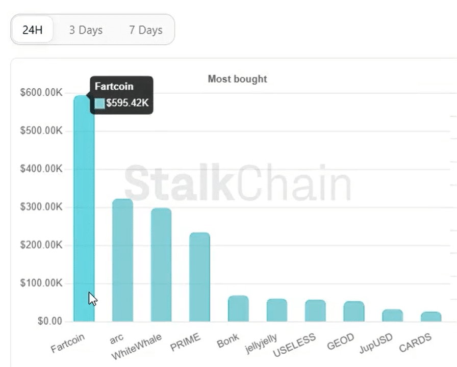 The memecoin was driven by both technical structural changes and activity. As per data from StalkChain, the smart money accumulated about $600K worth of Fartcoin [FARTCOIN] in the past 24 hours.