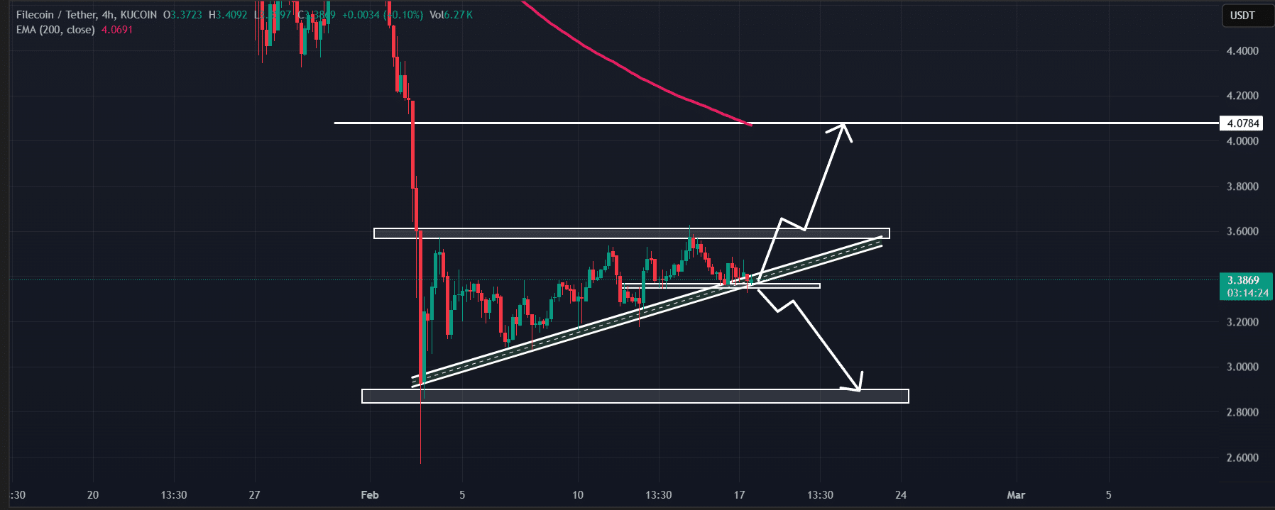 Based on recent price action, if FIL holds at $3.38, it could soar by 20% to reach $4.05. However, if FIL fails to hold this level and closes a four-hour candle below $3.30, it could drop by 14% to reach $2.92.