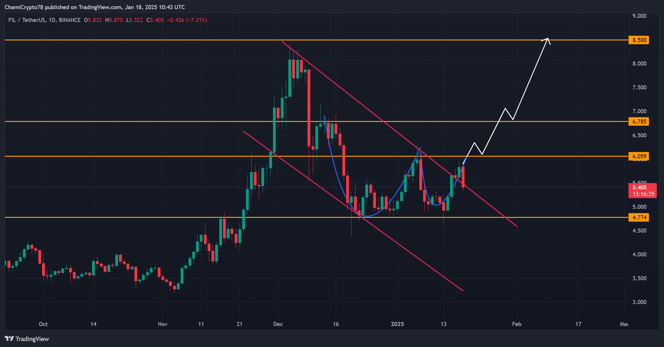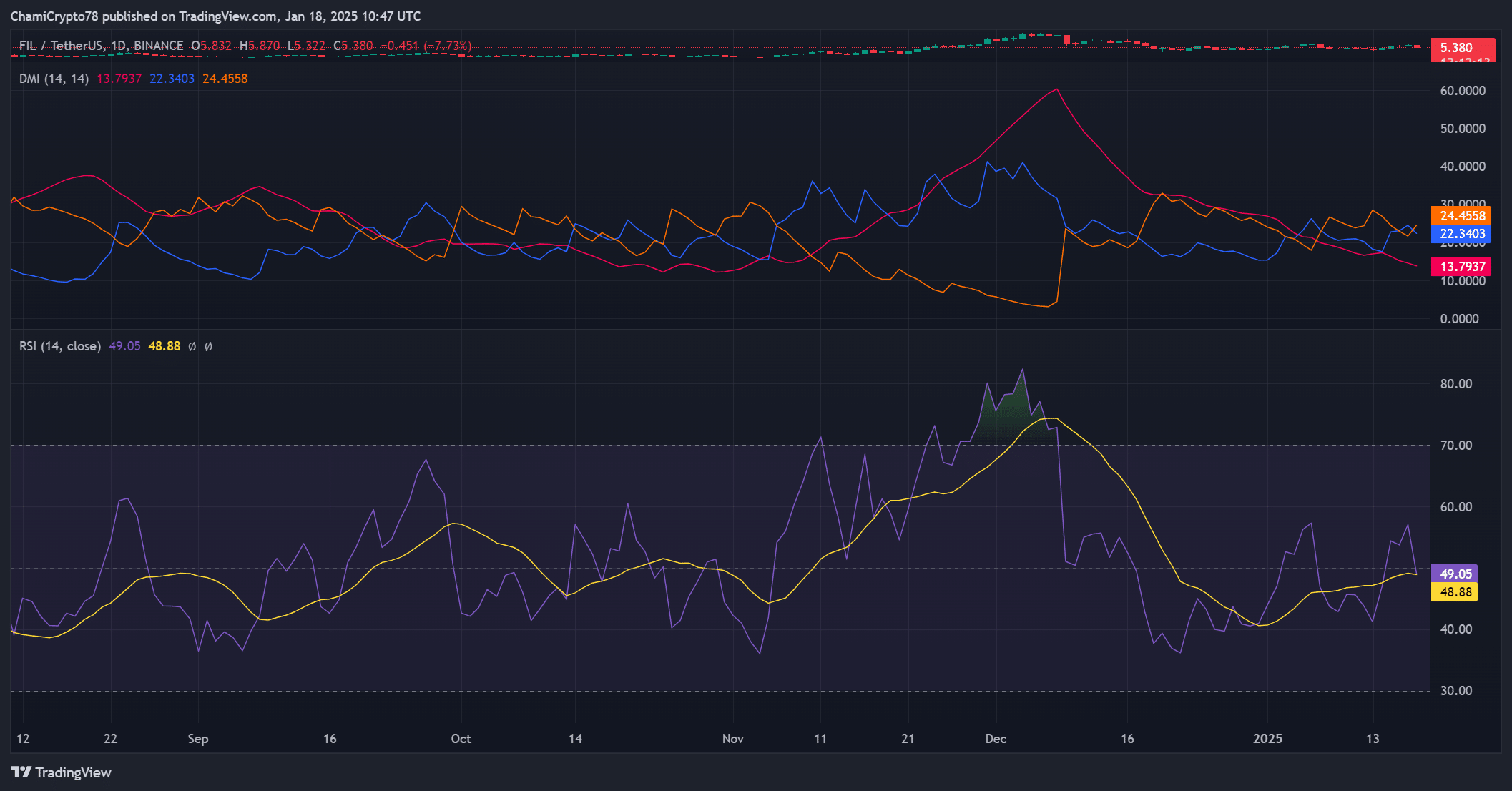 Despite this breakout, however, FIL had a press time price of $5.40, with the crypto down by 7.37%. This raises concerns about whether this bullish move can sustain itself. Can the market regain confidence and push FIL higher?