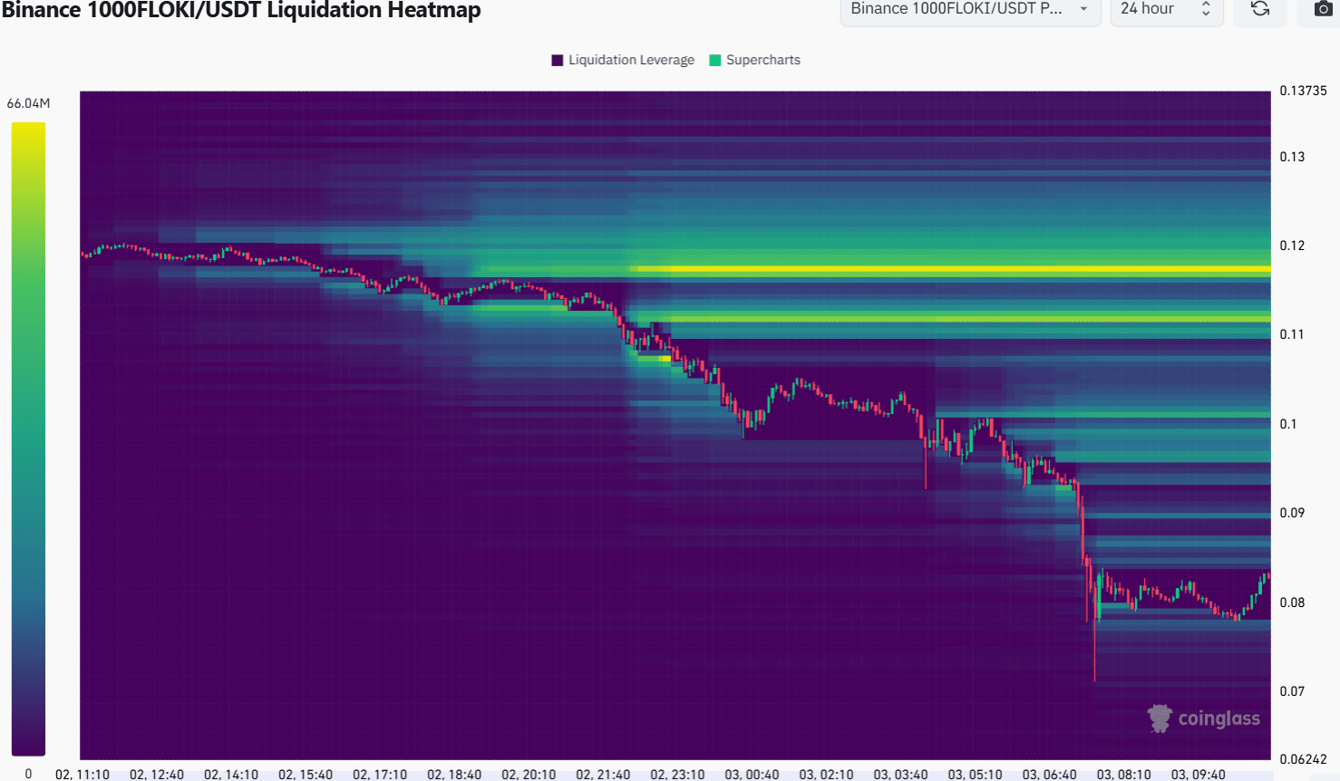 The 24-hour liquidation heatmap showed that $0.0001 and $0.000117 were overhead magnetic zones, but they were a long way away from current prices.