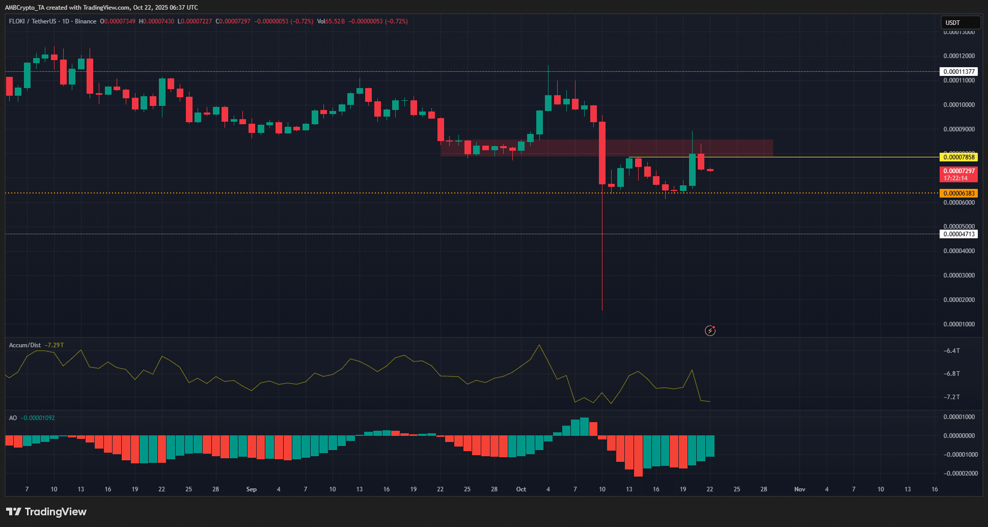 This internal structure shift came after the local swing high at $0.0000785 was breached during Monday’s rally. However, the Awesome Oscillator continued to flash bearish momentum.