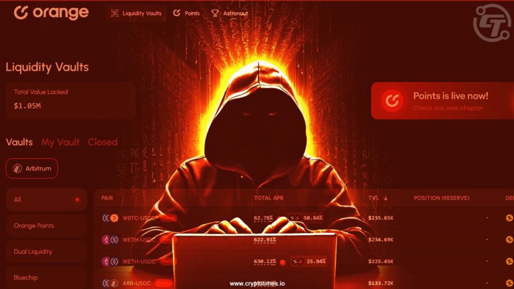 Yet another security breach has left the world aghast when one of the most popular DeFi protocols built on the Arbitrum blockchain, named Orange Finance, lost more than $840,000 to hackers. The attacker, who broke into the platform by attacking the vulnerabilities in the smart contracts, compromised the admin address and successfully withdrew funds from the system.