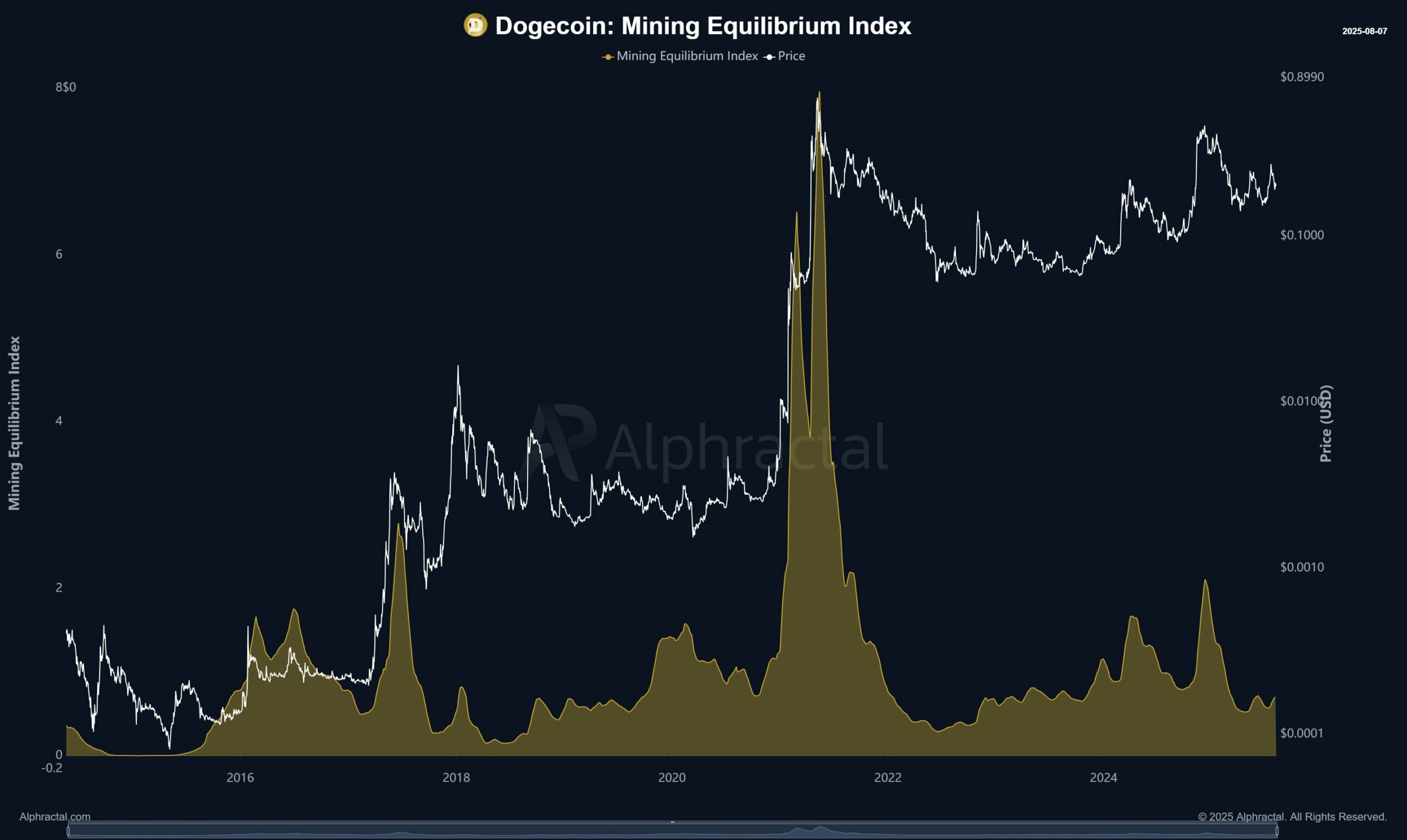 An analysis of the Mining Equilibrium Index on Alphatractal—a metric used to track miner profitability—shows early signs that a rally could be imminent.