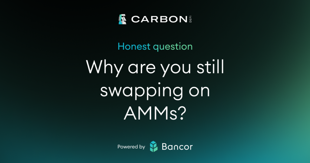 Carbon DeFi is NOT an AMM, nor is it your typical DEX. Bancor went back to the drawing board for all the reasons we’ve discussed, creating an entirely new model for on-chain trading — one where you truly control your trades, and the protocol works with you, not against you.