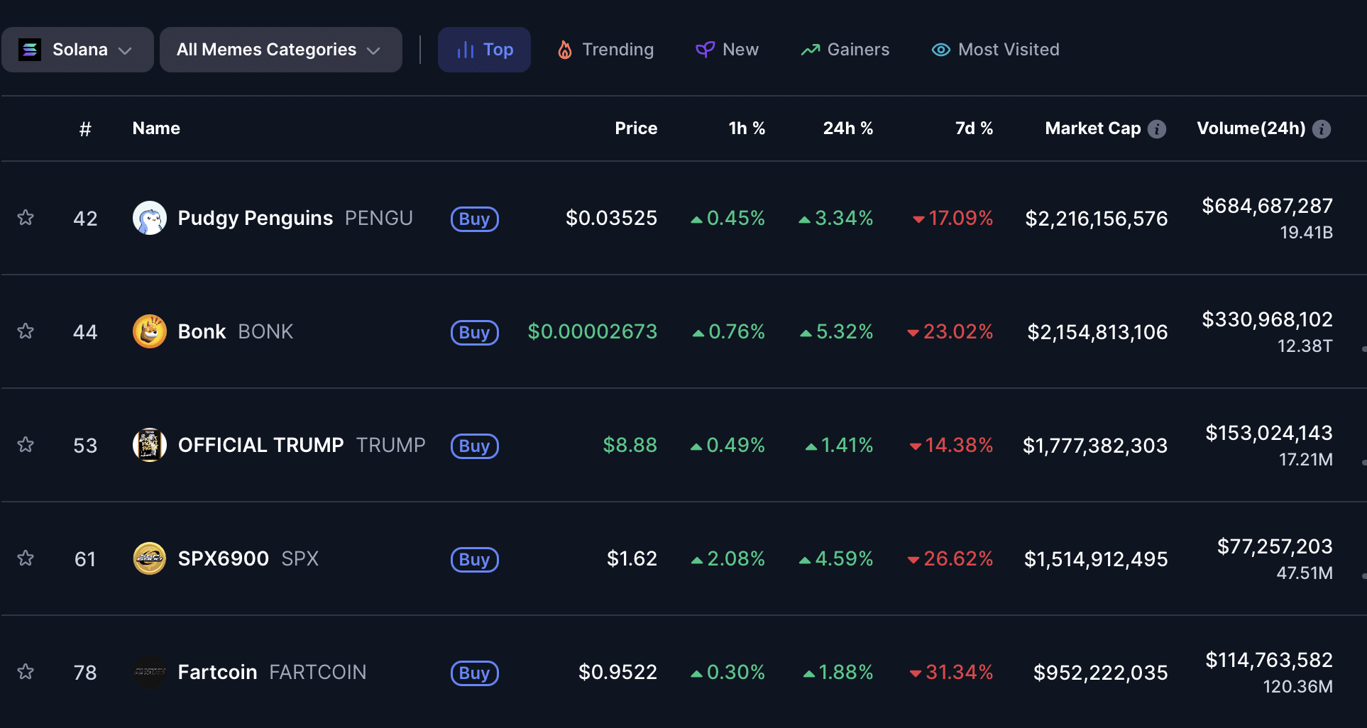 Despite Anatoly’s dismissive stance, memecoins remain dominant on the Solana blockchain.