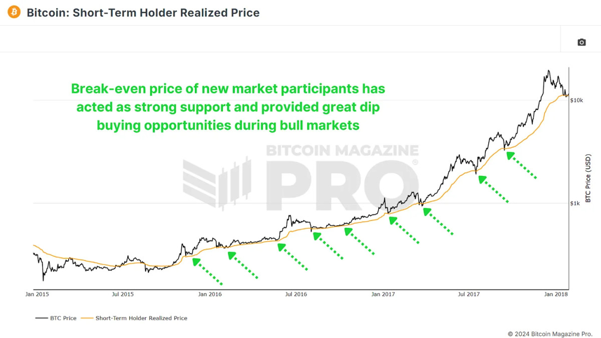 Figure 2: Short-Term Holder break-even has historically marked bull market turning points.