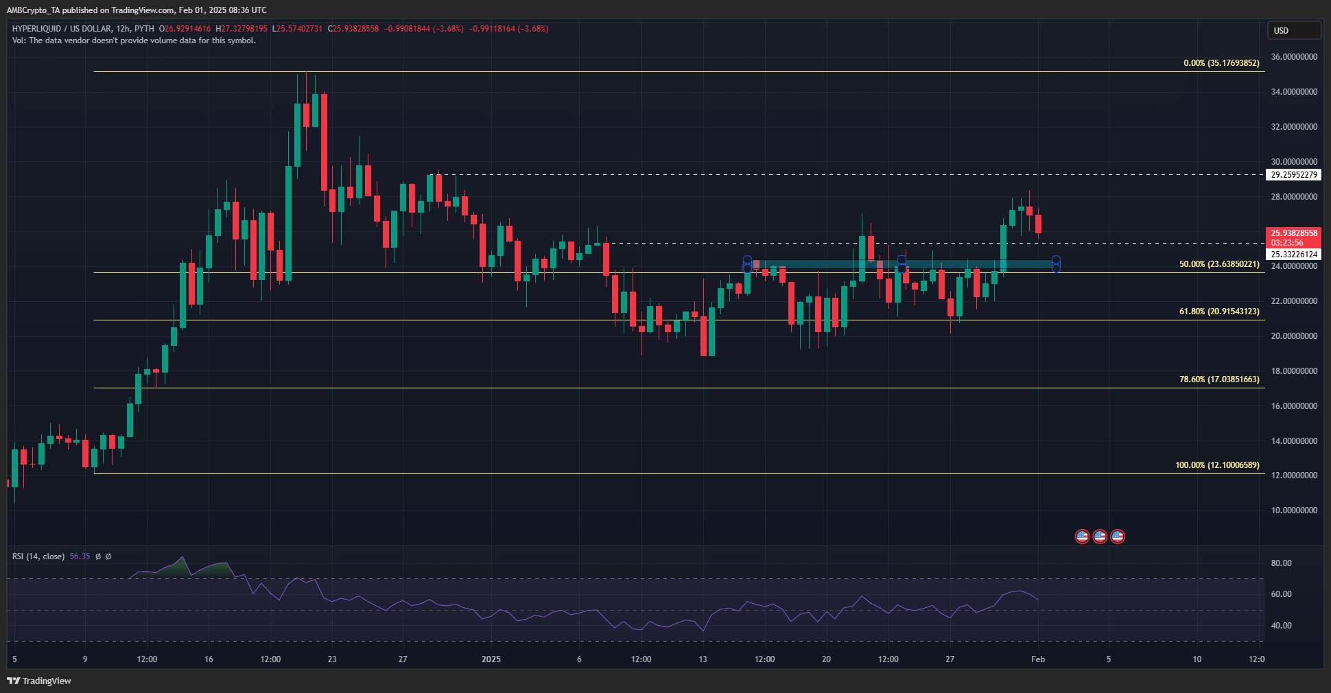 Hyperliquid [HYPE] has shed close to 4% of its value in the last 24 hours, with the token’s daily trading volume down by nearly 9% from the previous day. This, after the bullish market structure break the token achieved on 30 January as its price climbed past $23.74 on the charts.