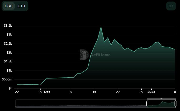 HYPE has experienced significant liquidity outflows, with its TVL dropping to $1.553 billion, a level last seen on December 14. This follows a peak of $2.244 billion on the 2nd of January.