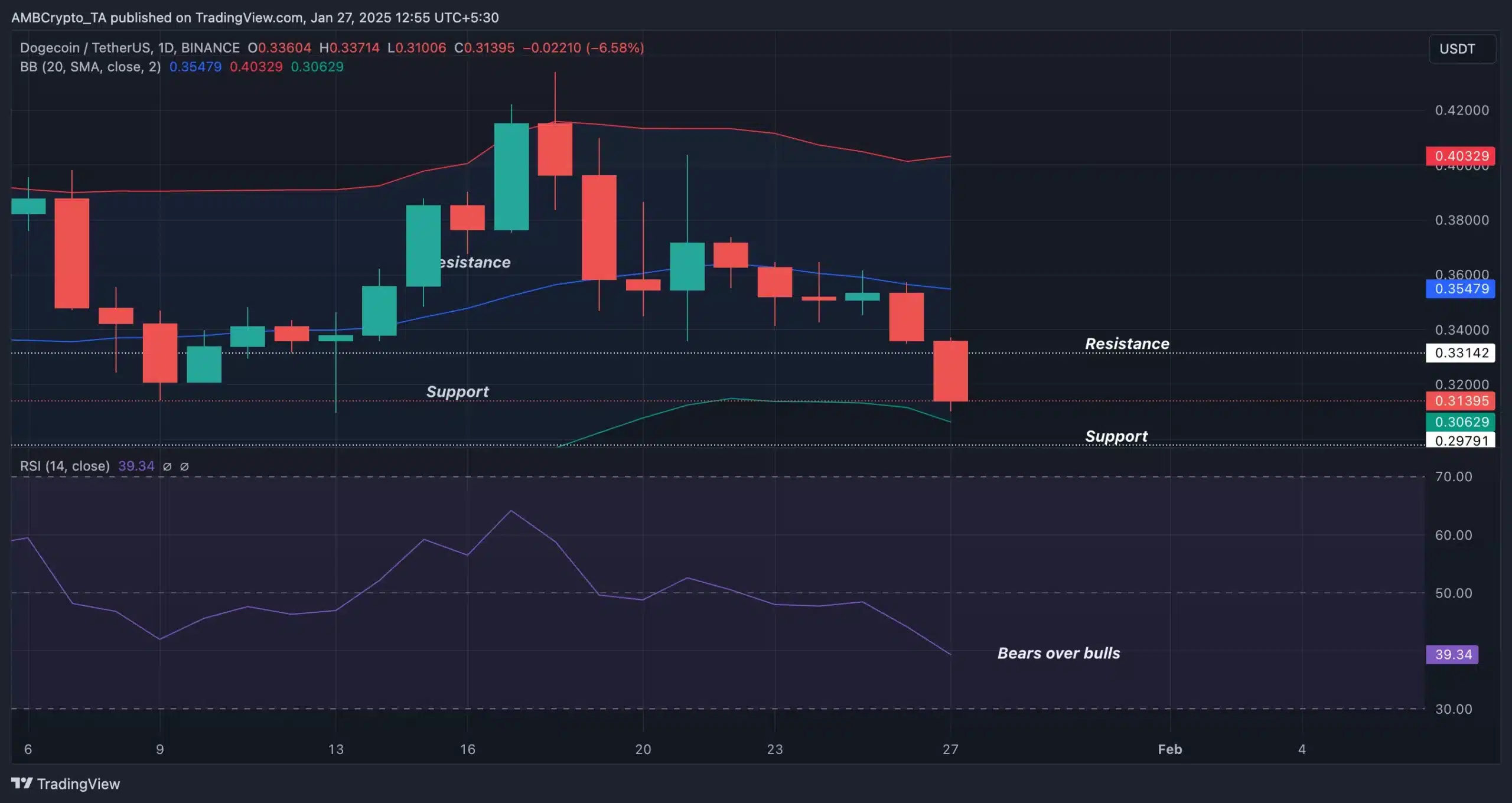 That being said, despite the optimism surrounding Dogecoin, the Relative Strength Index (RSI) signals that bearish forces currently dominate the market.