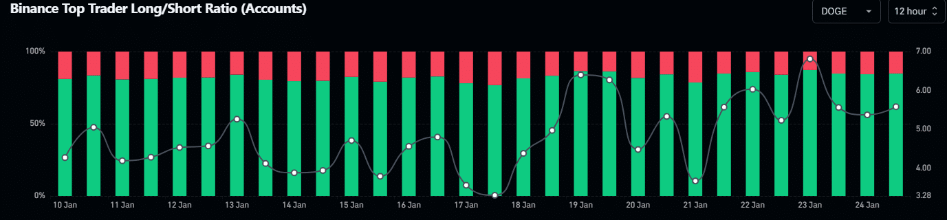 That being said, the 30-day MVRV fell back into negative territory, meaning the memecoin was relatively undervalued and ripe for scooping for the next potential reversal. Besides, nearly 85% of top Binance traders were net long on the memecoin, further supplementing the massive expectations of a price recovery.