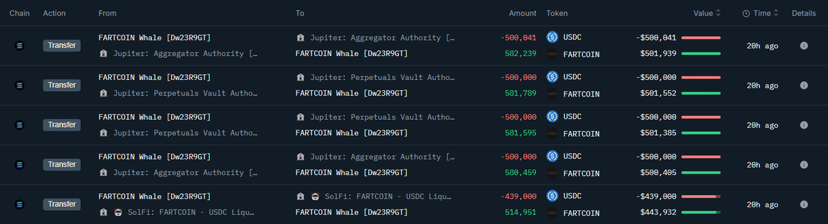 Recent activities by whales, underscore growing confidence in FARTCOIN’s prospects.