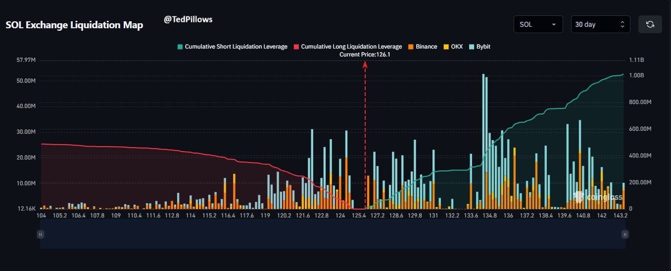 For analyst Ted Pillows, however, there was a higher chance of a 15% surge to $134-$140, citing a massive $1 billion upside liquidity of leveraged shorts.