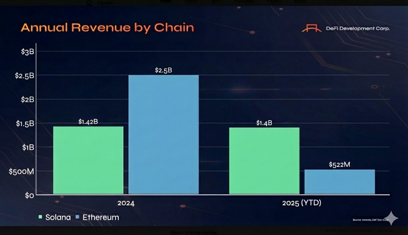- Ethereum outperformed Solana in annual revenue threefold, contrary to the 2024 performance.