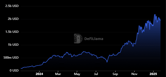 Sui too has been enjoying its exponential growth, from being $below $250 million to the TVL surging as high as $2.18 billion earlier this month.