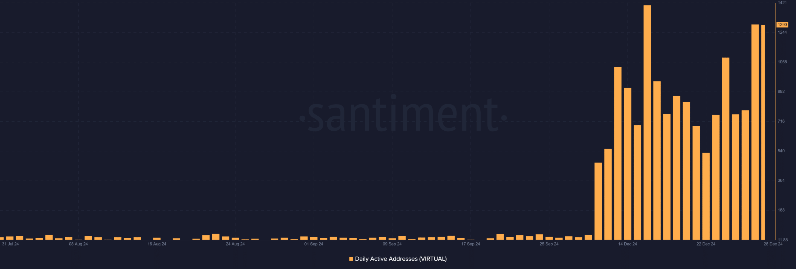 This data demonstrated a cautiously optimistic outlook from traders, who expected VIRTUAL to maintain its upward trend.