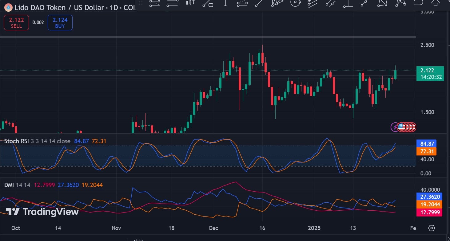 In fact, as of this writing, Lido DAO was trading at $2.14. This marked a 10.06% increase on daily charts. Equally, the altcoin has made significant gains on monthly charts, surging by 12.68%.