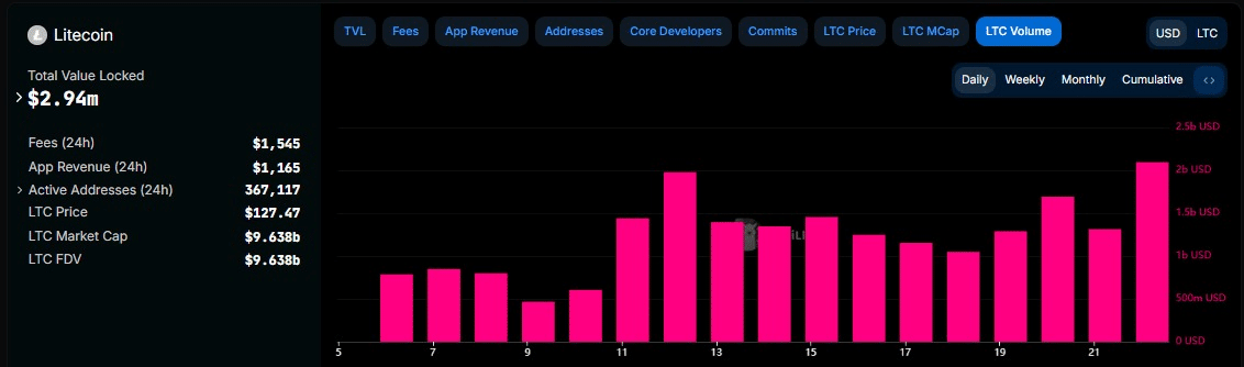 With the LTC ETF approval odds rising, investors could be positioning themselves for Litecoin’s bullish rally, as evidenced by its rising total value locked(TVL).
