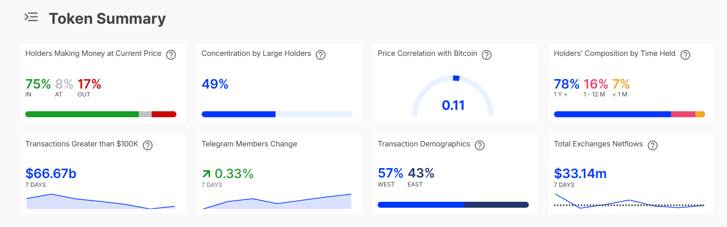 The 7-day exchange netflow ($33.14M) showed minimum selling pressure as the majority of investors were at a profit, according to IntoTheBlock data.