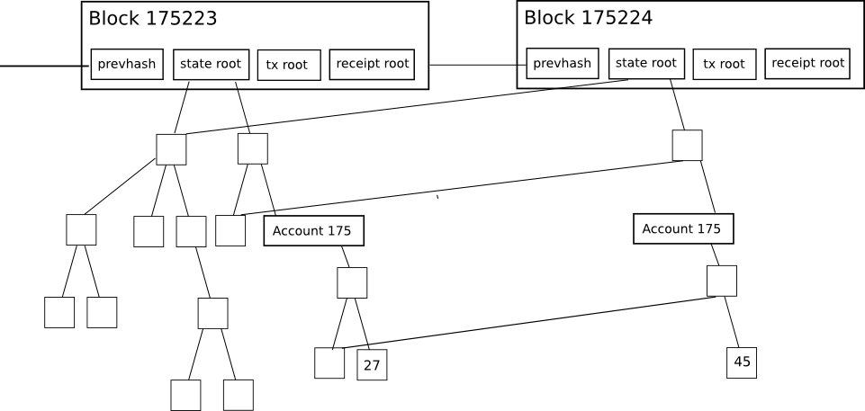 This gets us pretty far, but Bitcoin-style light clients do have their limitations. One particular limitation is that, while they can prove the inclusion of transactions, they cannot prove anything about the current state (eg. digital asset holdings, name registrations, the status of financial contracts, etc). How many bitcoins do you have right now? A Bitcoin light client can use a protocol involving querying multiple nodes and trusting that at least one of them will notify you of any particular transaction spending from your addresses, and this will get you quite far for that use case, but for other more complex applications it isn’t nearly enough; the precise nature of the effect of a transaction can depend on the effect of several previous transactions, which themselves depend on previous transactions, and so ultimately you would have to authenticate every single transaction in the entire chain. To get around this, Ethereum takes the Merkle tree concept one step further.
