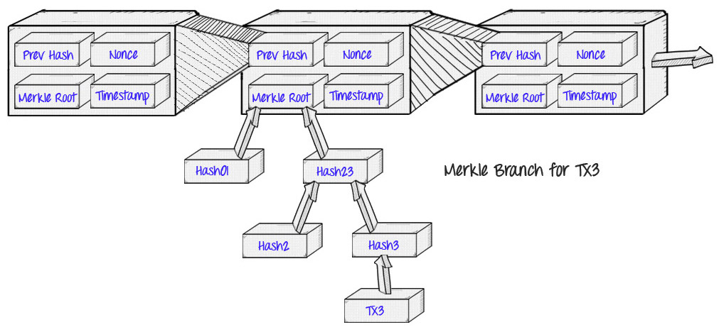 A Merkle proof consists of a chunk, the root hash of the tree, and the “branch” consisting of all of the hashes going up along the path from the chunk to the root. Someone reading the proof can verify that the hashing, at least for that branch, is consistent going all the way up the tree, and therefore that the given chunk actually is at that position in the tree. The application is simple: suppose that there is a large database, and that the entire contents of the database are stored in a Merkle tree where the root of the Merkle tree is publicly known and trusted (eg. it was digitally signed by enough trusted parties, or there is a lot of proof of work on it). Then, a user who wants to do a key-value lookup on the database (eg. “tell me the object in position 85273”) can ask for a Merkle proof, and upon receiving the proof verify that it is correct, and therefore that the value received actually is at position 85273 in the database with that particular root. It allows a mechanism for authenticating a small amount of data, like a hash, to be extended to also authenticate large databases of potentially unbounded size.