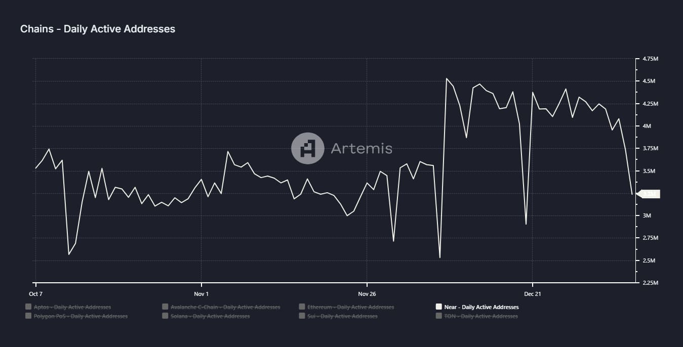 • The number of active addresses on the Near Protocol has seen a significant decline, raising concerns.