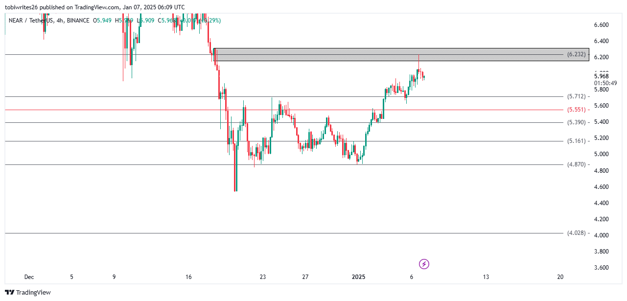 On the 4-hour chart, NEAR appeared to be in a vulnerable position after trading into a supply zone between $6.154 and $6.311.