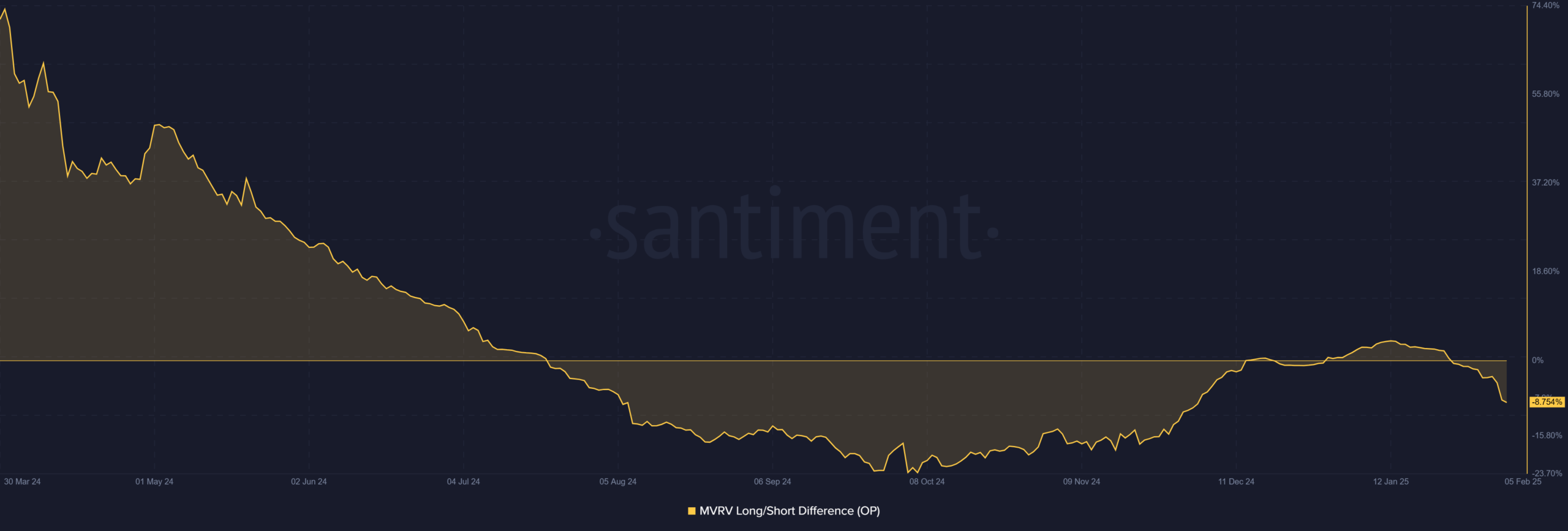 In other words, traders are leaning toward the downside, signaling a lack of confidence in the market’s ability to recover. This divergence further supports the bearish thesis for OP.